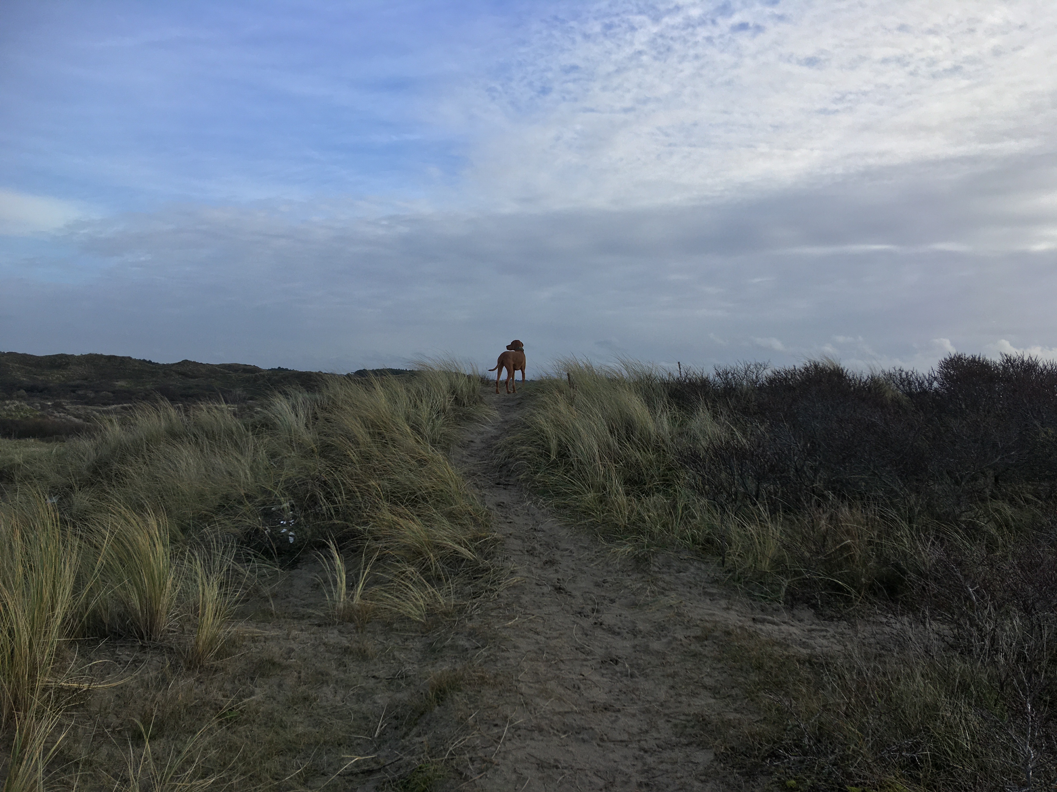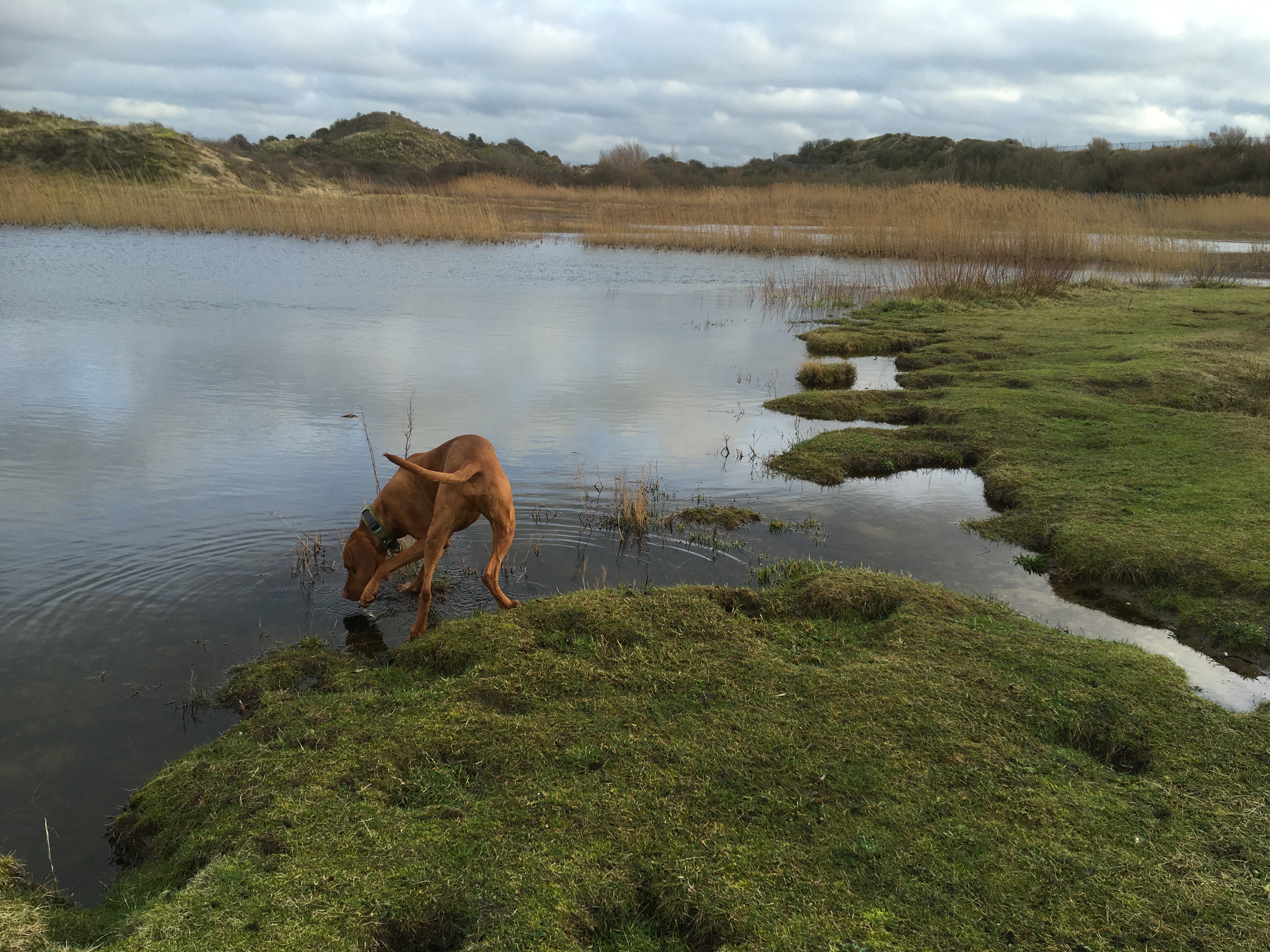 The Bloemendaal dunes are part of the Zuid-Kennemerland Dunes and the dog section is a large area of rugged sand-scapes and beach grasses, with a large water spot – depending on how much it has rained lately.