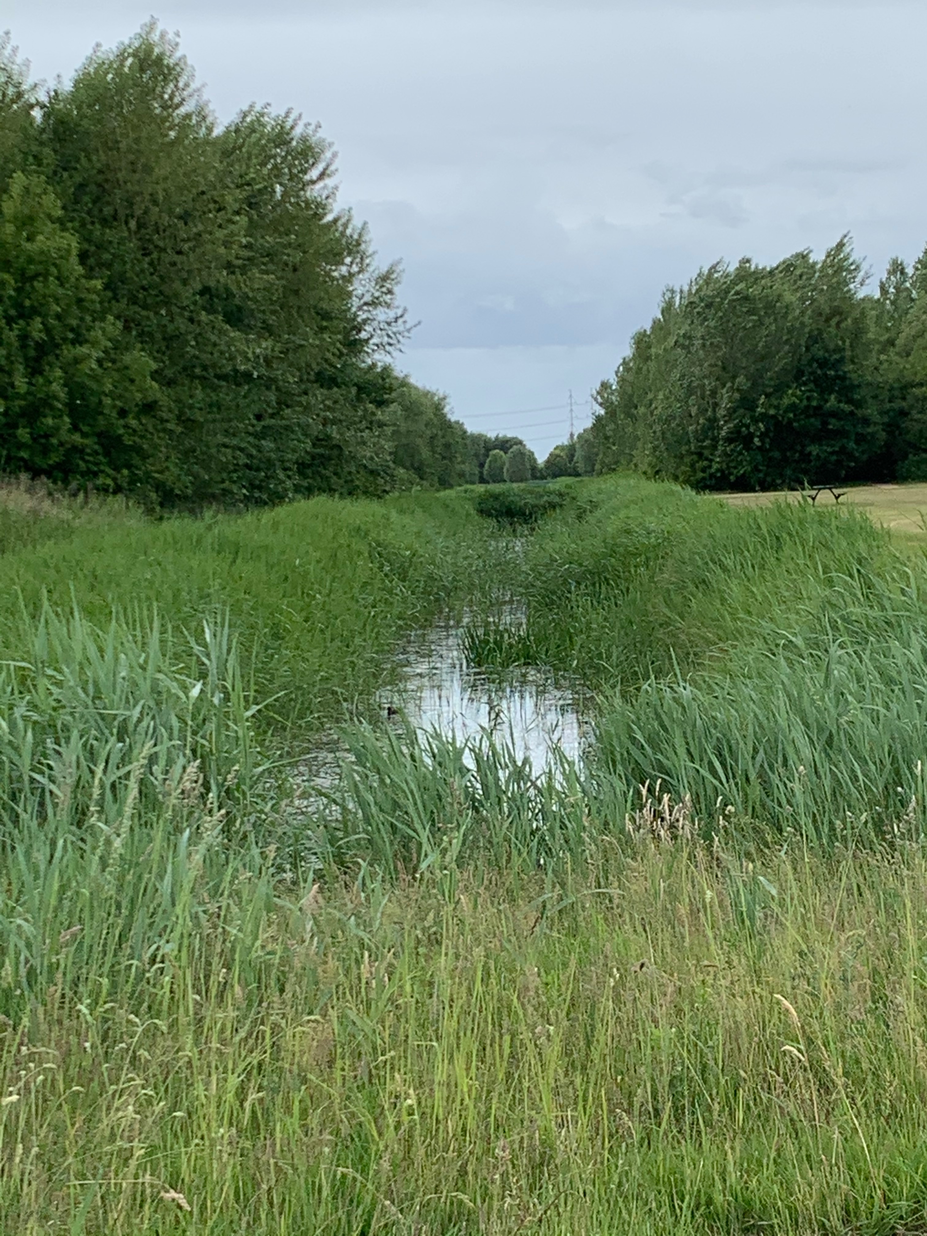 The off-leash area is large enough for a decent stroll, the leashed-only area is mostly the open plain where the picnic tables are. The paths cross each other in several places and you can probably stretch a walk for maximum one hour, maybe a little longer if you take time to have a good sniff around. There are a lot of natural looking canals lined with long grasses and reeds, which make it a sniffing paradise for any pup. The water was clean in most places, there was a little litter in some of them but nothing you could not avoid.
