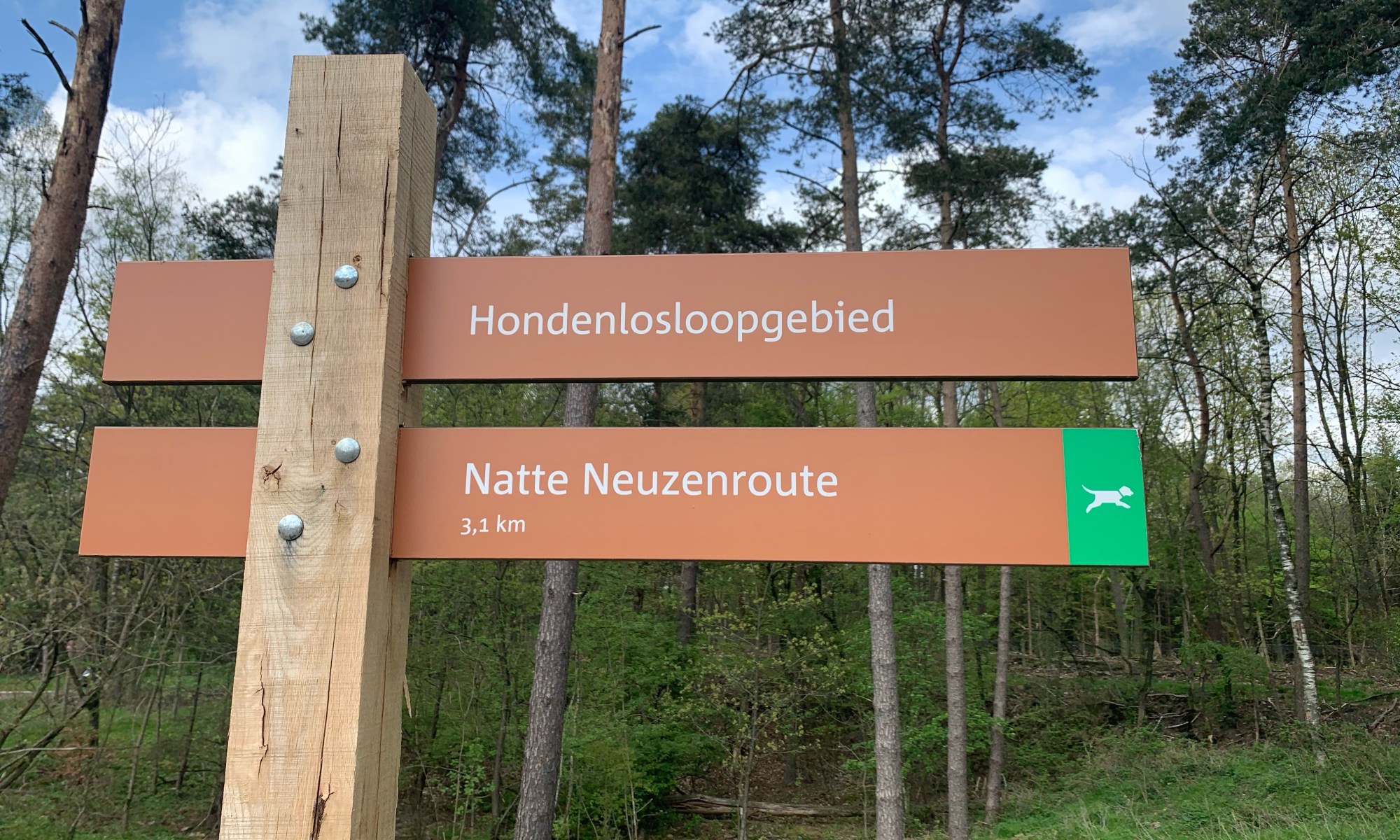 All walks start from the car park next to the restaurant/Info Centre (Bospaviljoen ‘t Leesten). There are two off-leash walks you can do, the dog losloopgebeit, which is a fenced-off area with a range of little paths running through the park, and you can probably cover the whole area in about 30-45 minutes. At the far end of this section you can leave the fenced-off area and follow a route called the Natte Neuzenroute (wet-nose route) which – providing you stick directly to the pathways, adds around an extra 3km to the route, however it is very clearly stated that you must keep your dog under control and not let him wander off the pathways. If you want to extend your walk even further then you can do so, but you must put your pup on a leash. All pathways are very clearly marked, there is no way you lose the way.