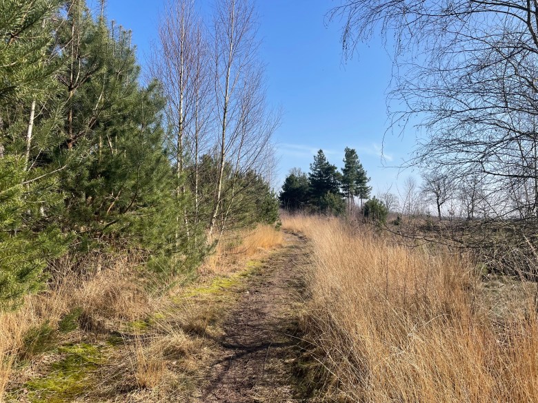 But since this website is all about leash-free areas we will focus on that. The path you want to take is the Heideroute, marked in yellow on the pathway signs. It is a long narrow circular route that runs almost parallel to the motorway.