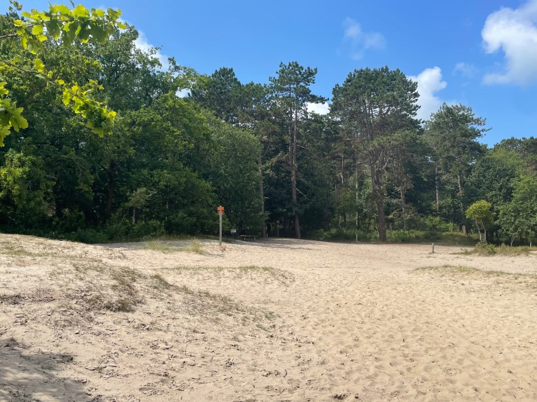 We parked in Westenschouwen, there is a large enough car park there right next to the Brasserie Zeelust (Steenweg 15, 4382 RL). Walk to the roundabout at the car park entrance and then along Kraaijensteinweg for about 10 minutes, and you will come across a kind of large rust coloured barrel with a pointy lid next to a sign saying “Duinen van Schouwen”. Walk up here, past the little cafe and keep going into the park.