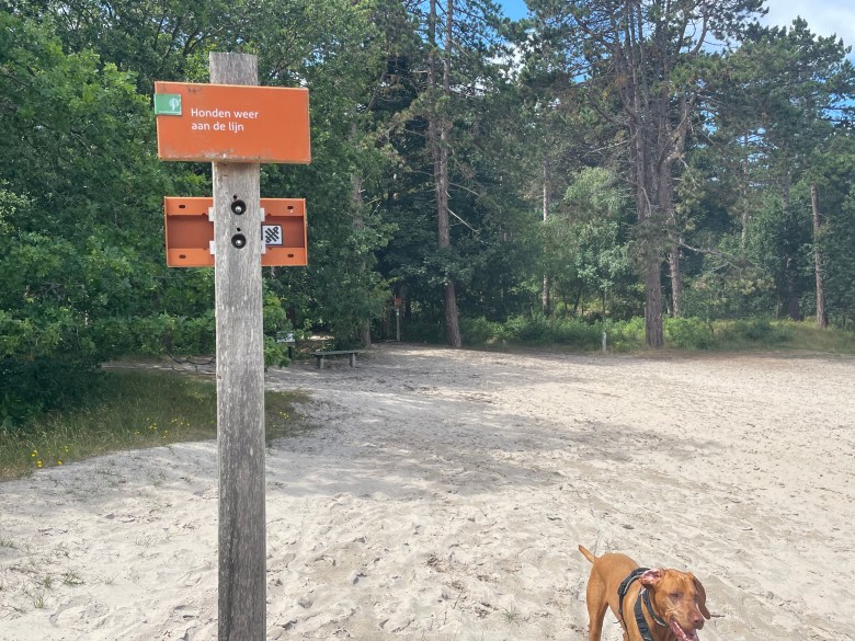 The off leash area is north-west of where you start, and can be found in Google Maps, if you just search for “MPJ6+C7 Burgh-Haamstede”. It is clearly marked from all sides. We took a very indirect route there and just enjoyed the lovely shaded walk on a hot day.