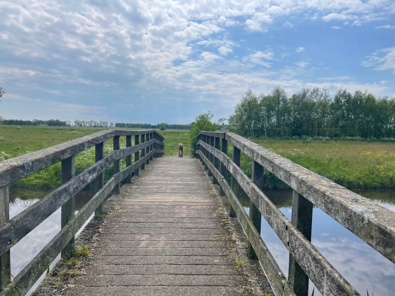 Park at the Brasserie De Jutter (Weidelandpad 3, 1448 MB Purmerend), and walk over the little wooden footbridge to the back of the restaurant and into the fields. This short walk is a leash only area but as soon as you are into the fields then you can release your furry ball of energy.