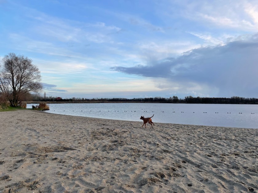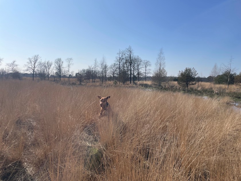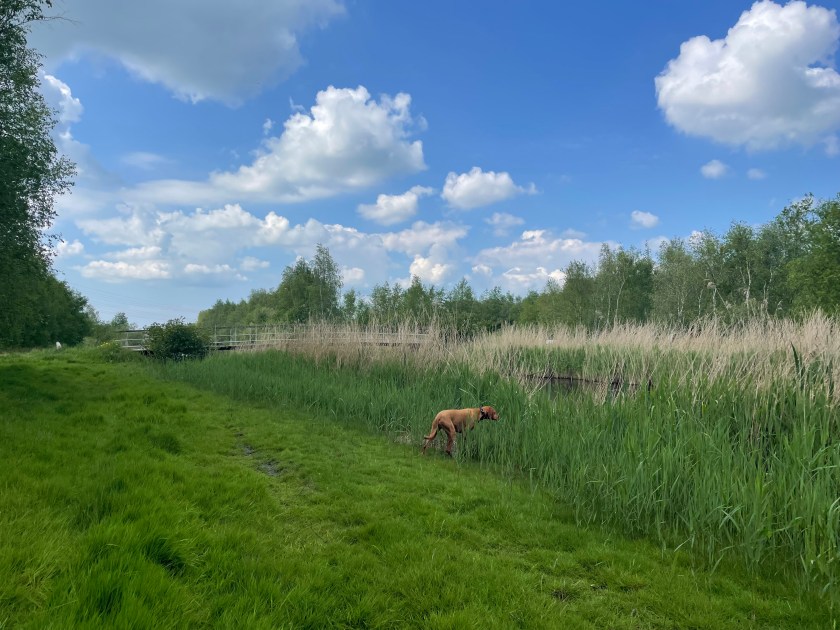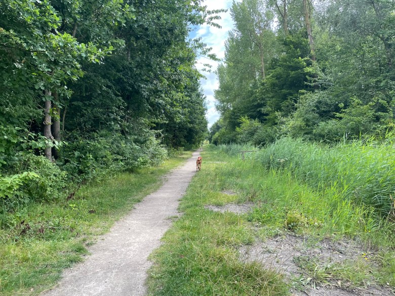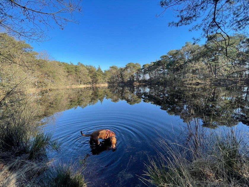 From the restaurant, we walked past the Bosbaan towards the Klimbos (children’s climbing area), and then veered south, following the main pathways. This point is still leash-only, until you come to a painted sign on the floor which marks the start of the loslopgebied. From here on, just follow the extensive labyrinth of pathways, walk around the Kleine Vijver lake and wind your way back, that alone will be around a 7-8 km walk. To the right of the main pathway is a dog free zone which allows dogs on-leash between October and March. It’s up to you if you want to explore them, we didn’t because we were having too much fun running free in the fields!