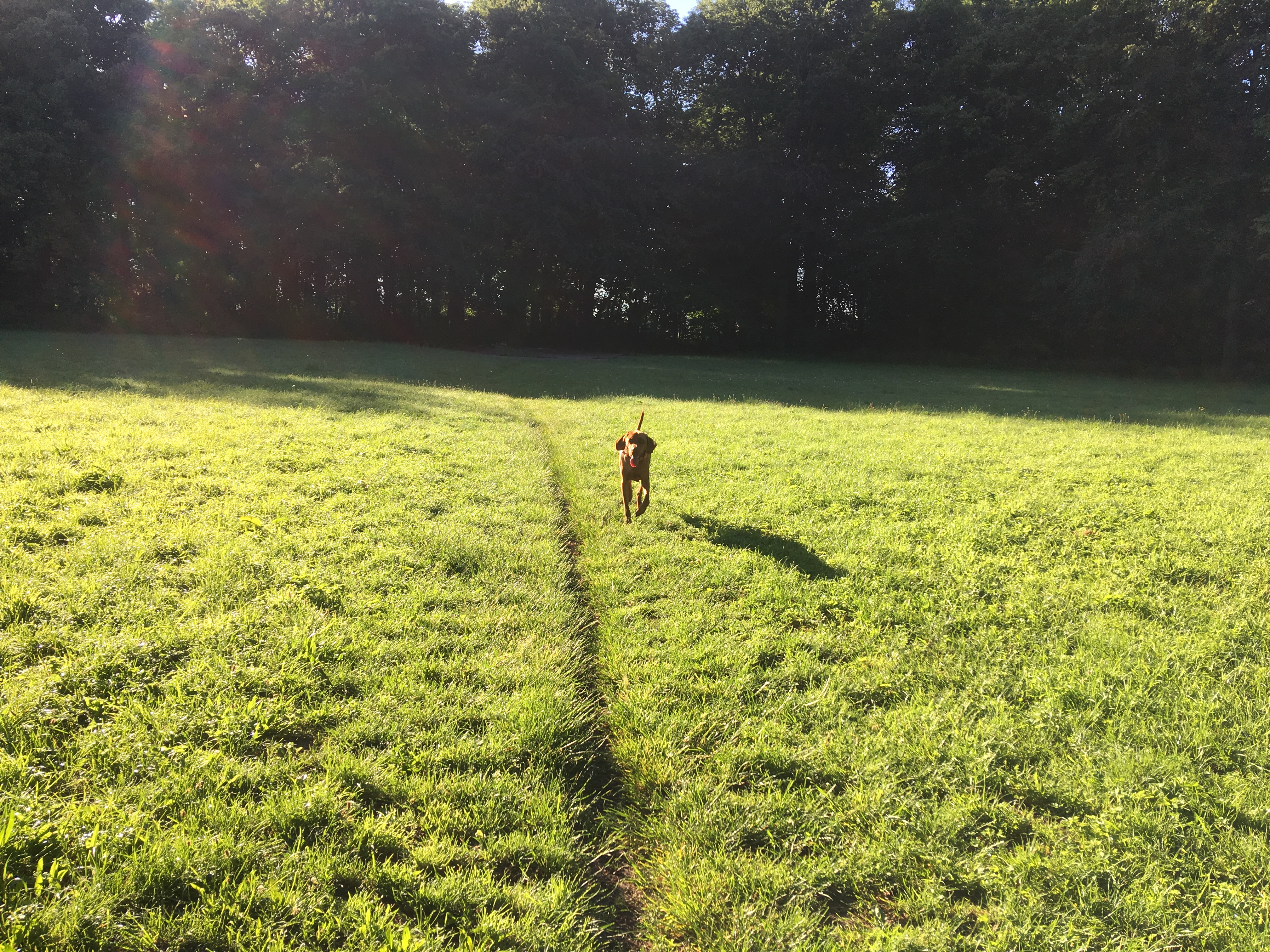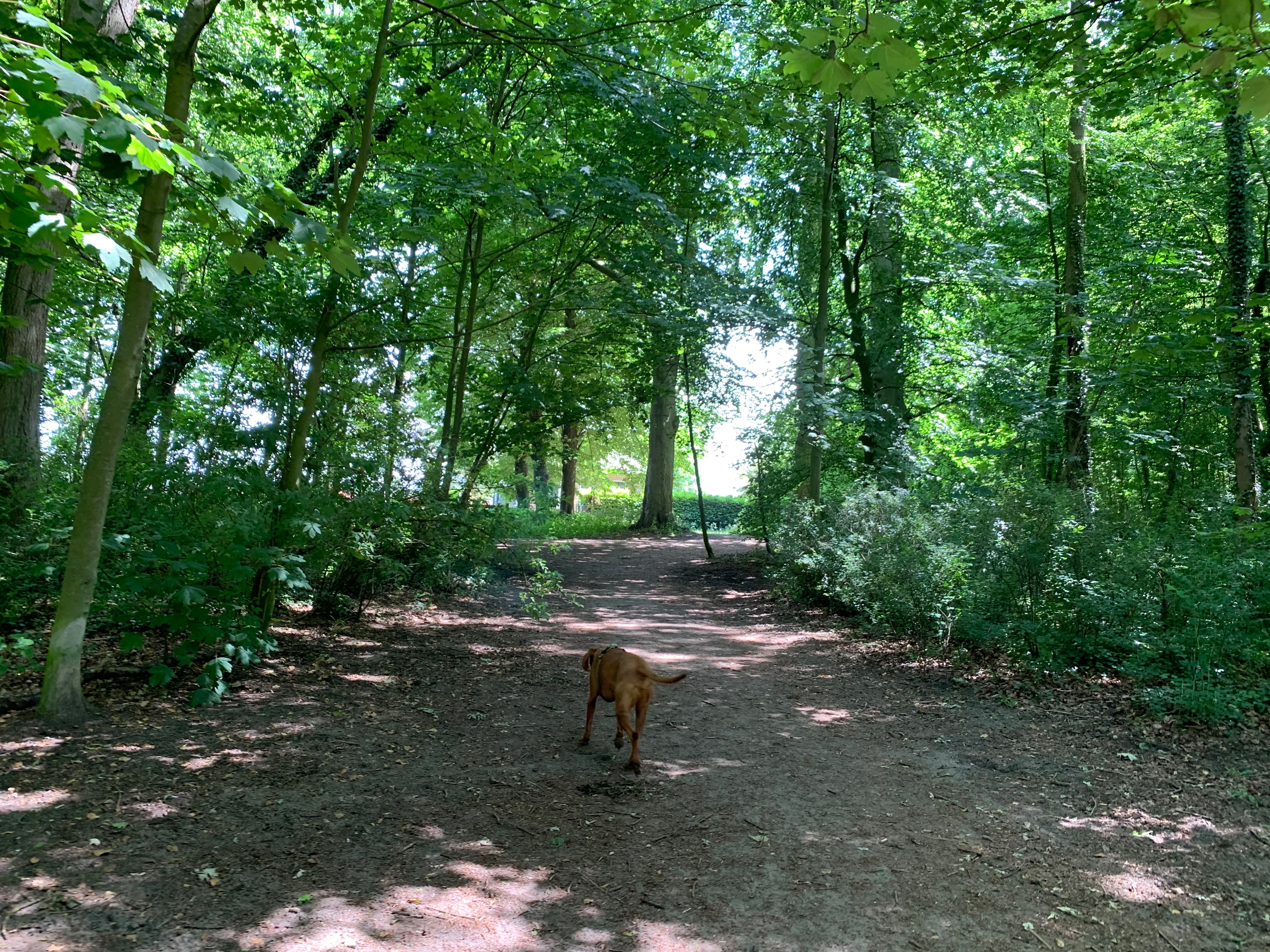From the restaurant, we walked past the Bosbaan towards the Klimbos (children’s climbing area), and then veered south, following the main pathways. This point is still leash-only, until you come to a painted sign on the floor which marks the start of the loslopgebied. From here on, just follow the extensive labyrinth of pathways, walk around the Kleine Vijver lake and wind your way back, that alone will be around a 7-8 km walk. To the right of the main pathway is a dog free zone which allows dogs on-leash between October and March. It’s up to you if you want to explore them, we didn’t because we were having too much fun running free in the fields!